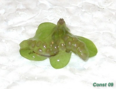 Как-то познакомился с постом на аквасайте, где автор утверждал, что плащеноски весьма часто встречаются в прудах в черте Петербурга. У меня выход молоди очевидно, близок к логическому концу. Очень хорошо видны уже маленькие моллюски всего в кладке насчитал 17 яиц. (см. фото). Если повезет, попробую зафиксировать сам процесс.