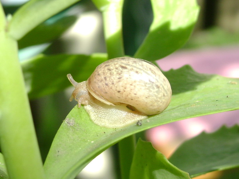 Возможно и Fruticicola. У нее тогда чуть выше периферии раковины очень часто бывает полоса, у монахи отсутствующая. Здесь очень хорошо видна просвечивающая сквозь тонкую раковину мантия с рисунком, а на раковине рисунка не видно, - опять же очень похоже на монах. Если бы наоборот, чуть ниже увидеть - у фрутициколы-брадибэны пупок заметно шире. Так что ракурс, действительно, с научной точки зрения существенно уступает художественной )))