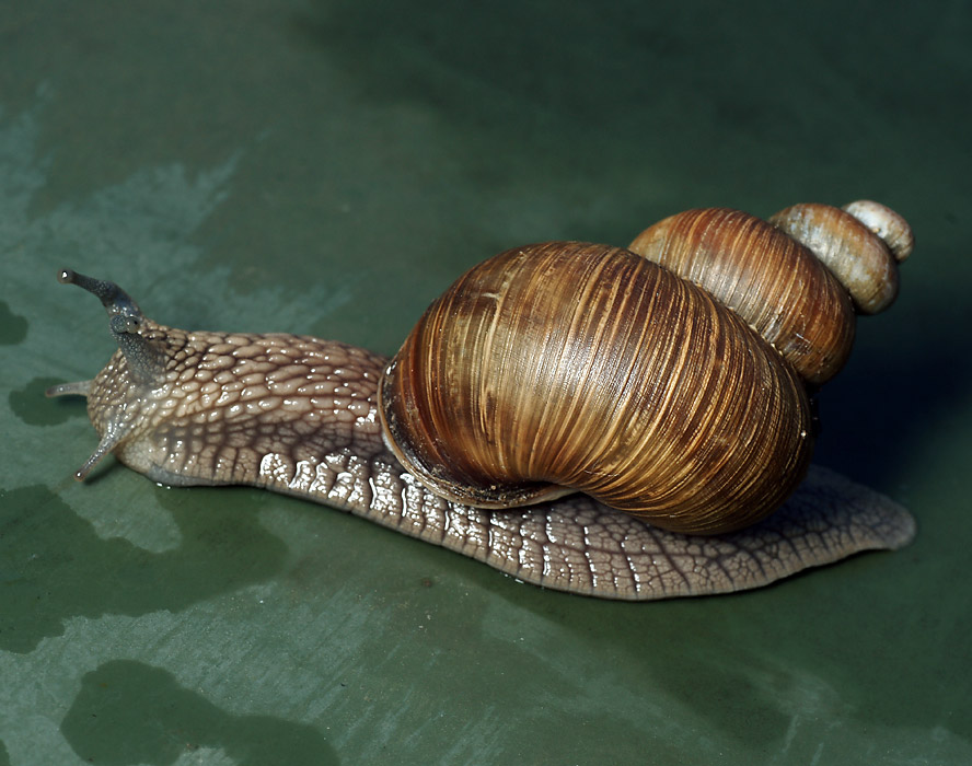 Улитка с удлиненной раковиной. Единственный экземпляр среди множества других (популяция более 300 экземпляров, живущих на территории садового участка.